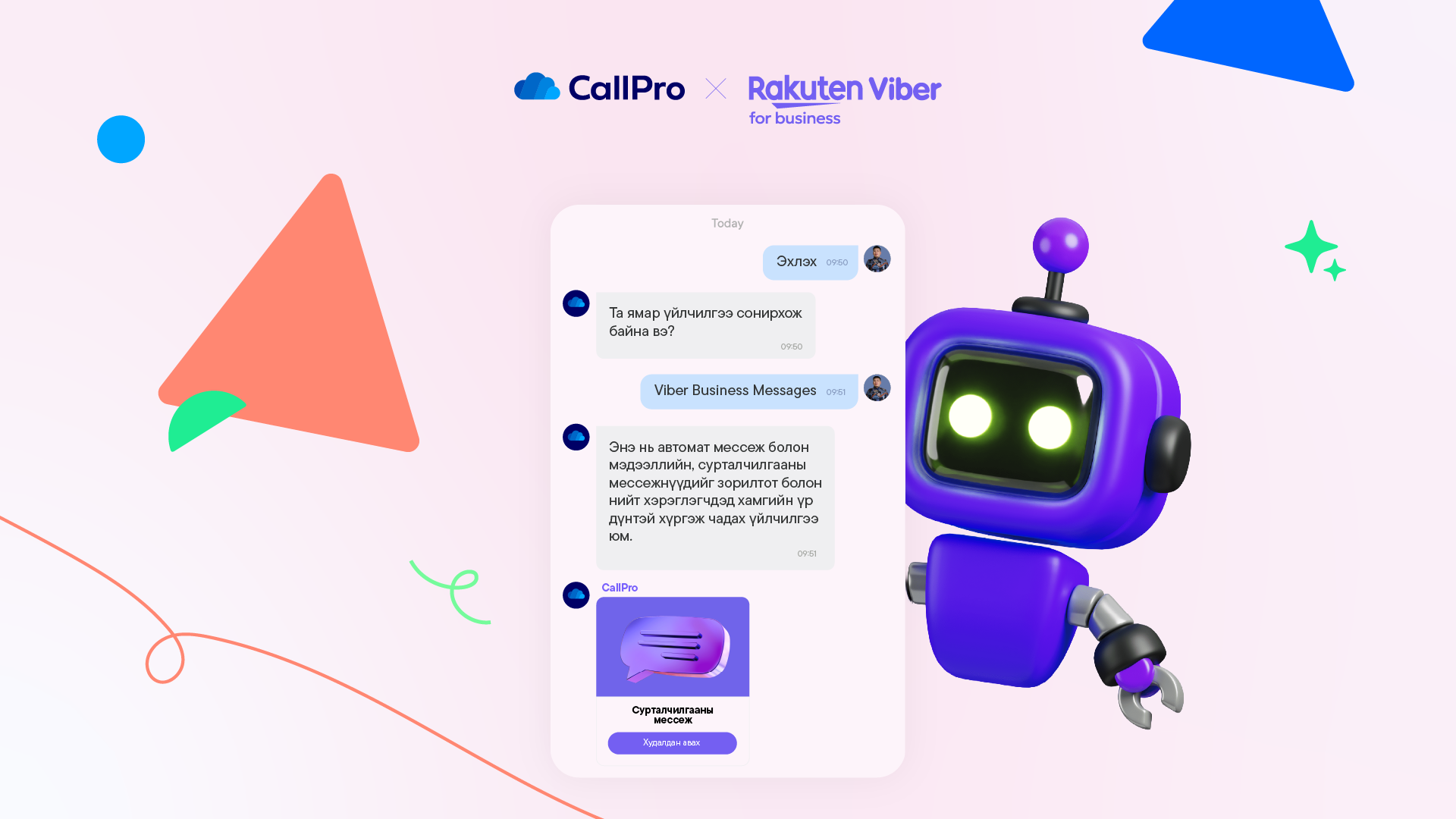Байгууллага өөрийн апплекейшн болон киоск машин дээр CallPro SDK үйлчилгээг нэвтрүүлснээр, хэрэглэгчтэйгээ шууд холбогдох, интернэт орчинд дуудлага хийх, хэрэглэгч тал дэлгэцээ хуваалцах зэрэг боломжтой